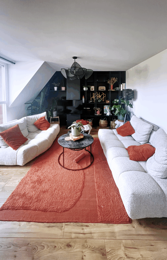 La rénovation repose sur un équilibre entre matériaux accessibles (carrelage, stratifiés) et menuiseries sur mesure pensées par MCLN Architecture, pour structurer et mettre en valeur les volumes. Le color block est utilisé comme outil d’ancrage visuel : terracotta dans l’entrée, noir pour la cuisine-buanderie et autour de l’escalier, ocre en fond de couloir à l’étage. Ces touches chromatiques rythment les espaces, les connectent, tout en clarifiant leur fonction.