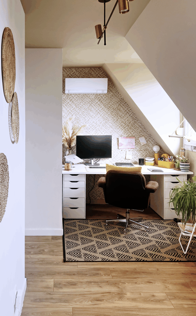 Situé en dernier étage, ce duplex sous combles des années 90 bénéficiait de beaux volumes mais d’un agencement peu cohérent, notamment au regard de sa surface généreuse de 100 m² habitables. Le défi ici était d’optimiser les espaces afin de créer une chambre supplémentaire sans sacrifier la qualité des pièces à vivre.