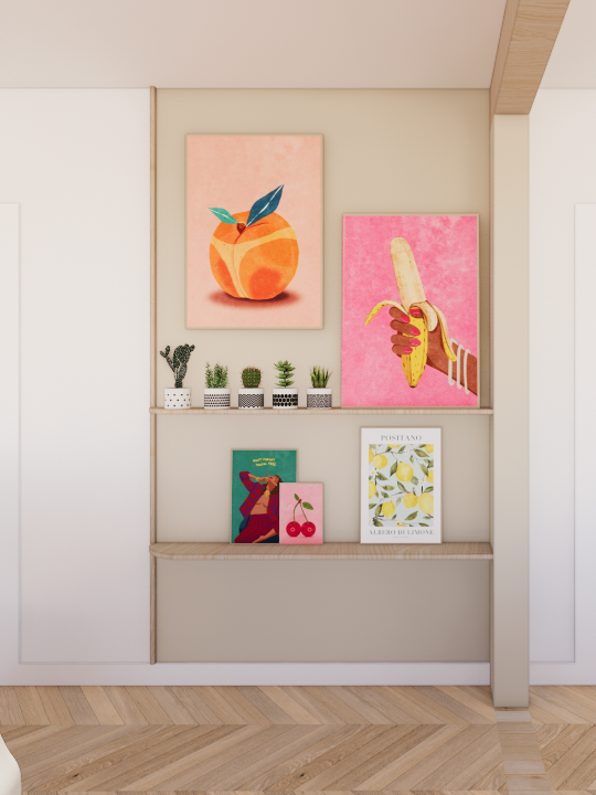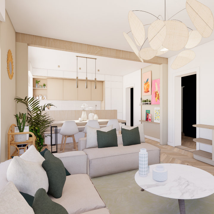 La mission consistait avant tout à accompagner les clients dans leur projection avant l’achat du bien, afin de démontrer le potentiel d’évolution de l’appartement sans transformation structurelle majeure.