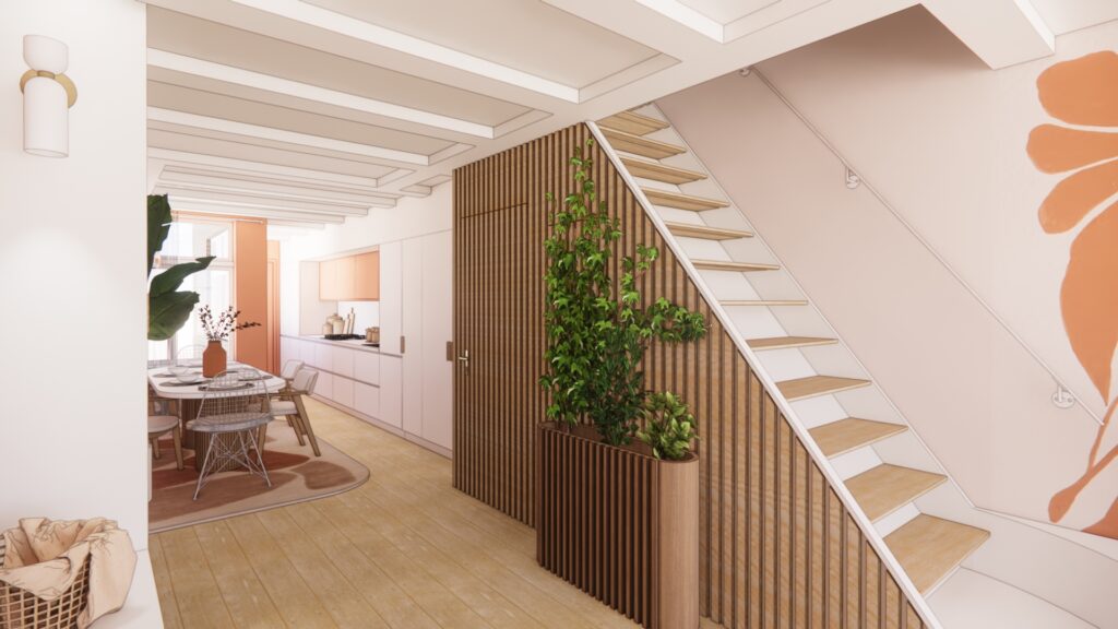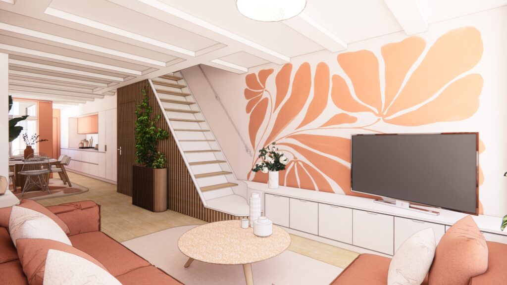 Une nouvelle manière d’habiter un duplex historique, plus lisible, plus fluide, et fidèle à l’esprit d’Amsterdam.